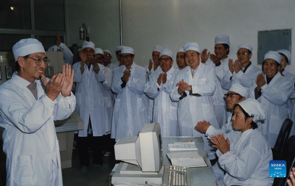 In this file photo, Wang Dazhong (1st L), director of the Nuclear Energy Research Institute of Tsinghua University, announces the successful starting of a 5-mW reactor for heating purpose in November 1989. Wang Dazhong, winner of China's top science award, was born in 1935, and is an internationally reputed nuclear scientist. A Chinese Academy of Sciences academician and former president of Tsinghua University, he has dedicated himself to the research and development of advanced nuclear energy technologies. One of his many internationally recognized achievements was the successful development of the first 10-mW modular high-temperature air-cooling nuclear reactor, which was put to commercial operation in 2003. (Tsinghua University/Handout via Xinhua)