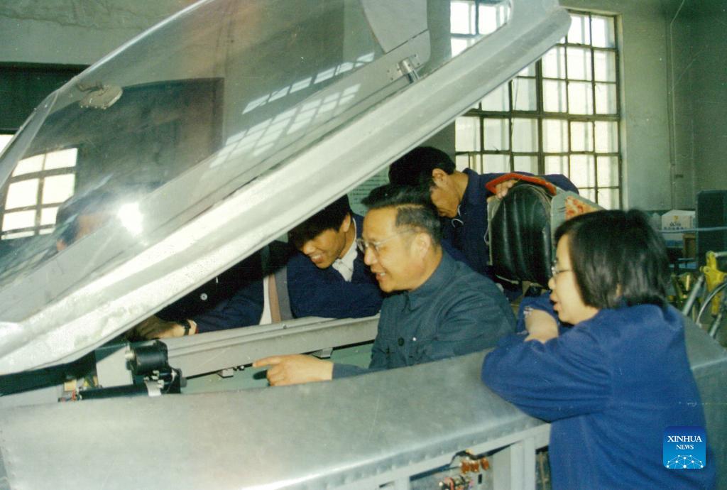 In this undated file photo, Gu Songfen works with his colleagues at a laboratory. Gu Songfen, winner of China's top science award, is an aircraft designer at the Aviation Industry Corporation of China, Ltd. (AVIC), the nation's leading aircraft maker. Born in 1930, Gu is an academician at both the Chinese Academy of Sciences (CAS) and the Chinese Academy of Engineering. Leading the development of China's J-8 and J-8 II fighter jets, Gu has made contributions to the country's advancement in aviation weaponry and equipment. (Xinhua)