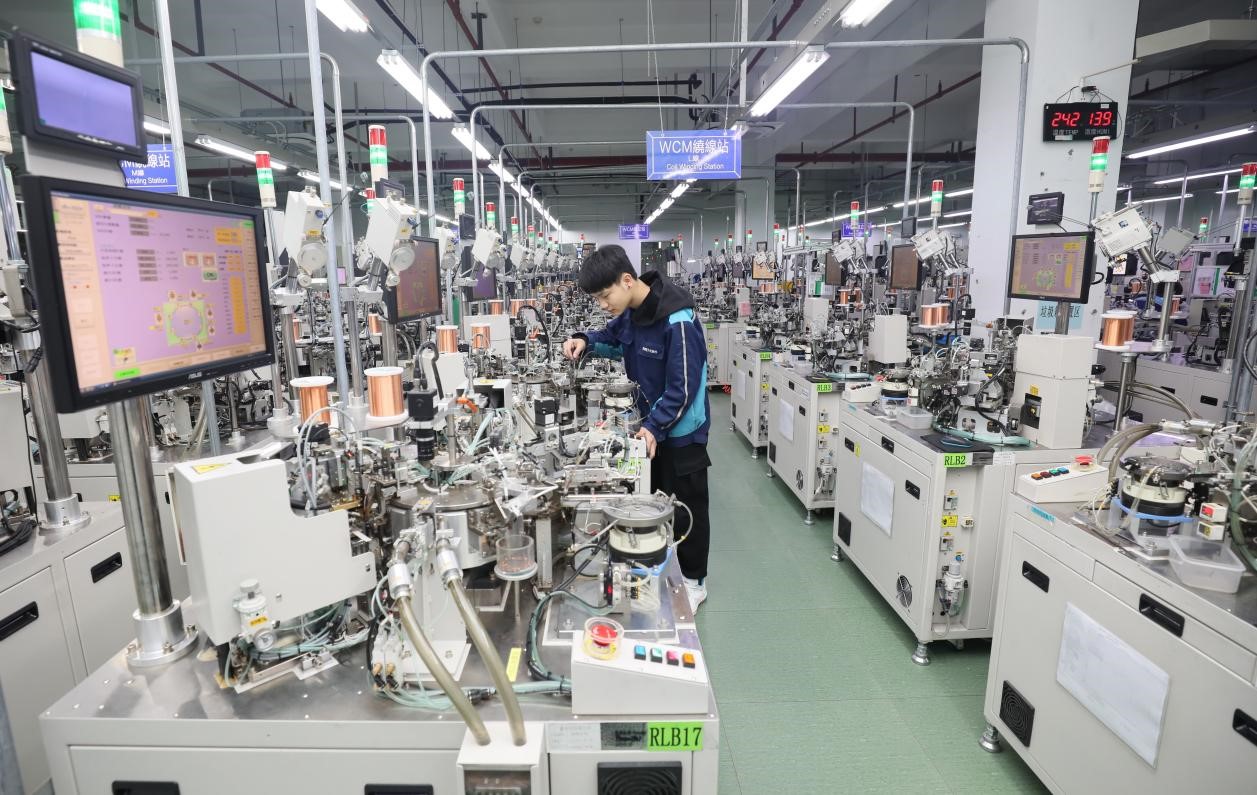 The workshop of an electronic parts and components manufacturer based in the economic development zone of Sihong county, east China’s Jiangsu province on Jan. 8, 2021. (People’s Daily Online/Geng Huaijun)