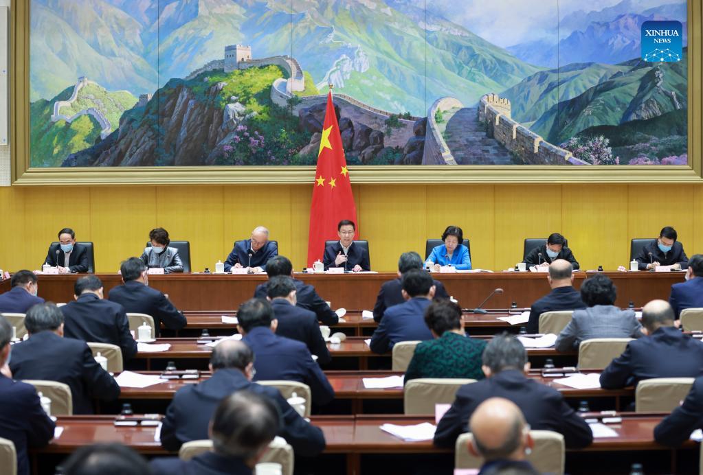 Chinese Vice Premier Han Zheng, also a member of the Standing Committee of the Political Bureau of the Communist Party of China Central Committee, presides over a meeting of the leading group which oversees the Beijing 2022 preparations in Beijing, capital of China, Nov. 4, 2021. (Xinhua/Ding Lin)
