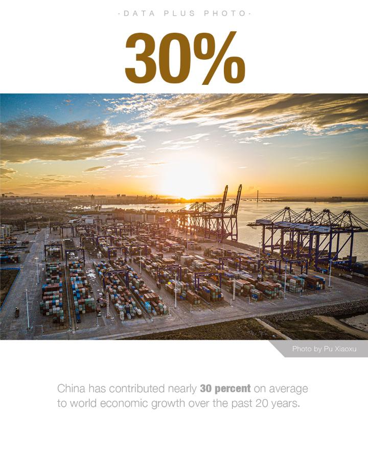 Contributing nearly 30 percent on average to world economic growth over the past 20 years, China now boasts the largest middle-income population in the world and is a major trade partner for over 120 countries and regions, and the largest trade partner of the European Union and the Association of Southeast Asian Nations.