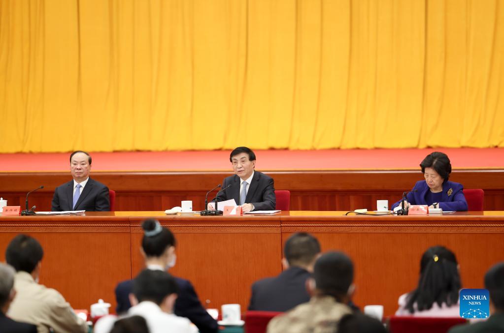 Wang Huning, a member of the Standing Committee of the Political Bureau of the Communist Party of China (CPC) Central Committee and a member of the Secretariat of the CPC Central Committee, delivers a speech at a symposium with national ethical role models in Beijing, capital of China, Nov. 5, 2021. (Xinhua/Ding Haitao)