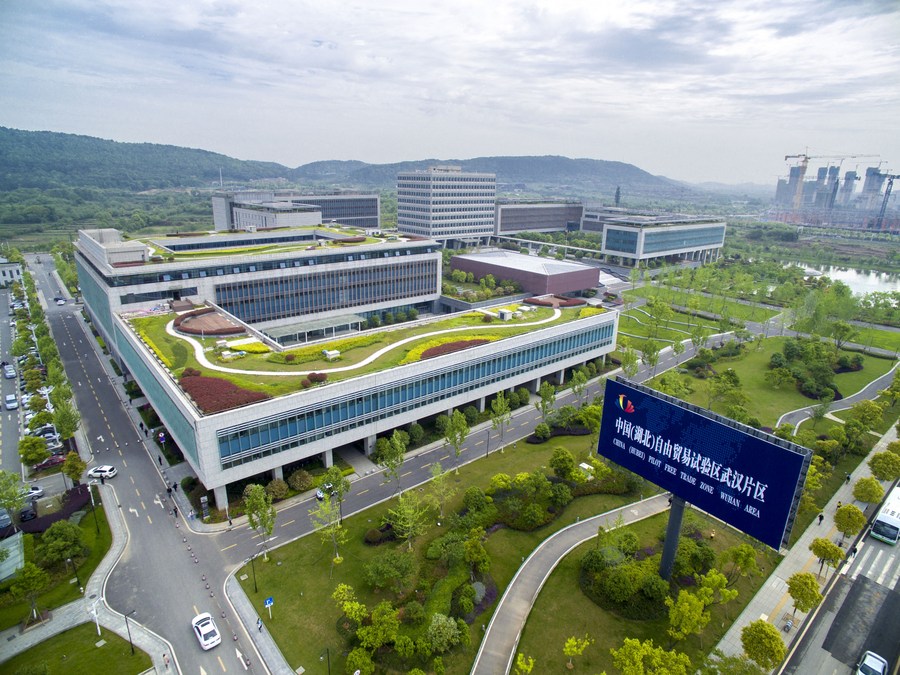 Aerial photo taken on April 19, 2017 shows the pilot free trade zone (FTZ) in Wuhan, central China's Hubei Province. (Xinhua/Xiong Qi)