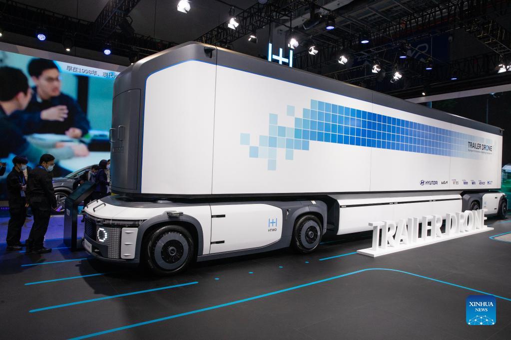 A Hyundai new energy vehicle is displayed at the 4th China International Import Expo (CIIE) in Shanghai, east China, Nov. 5, 2021. (Xinhua/Jin Liwang)