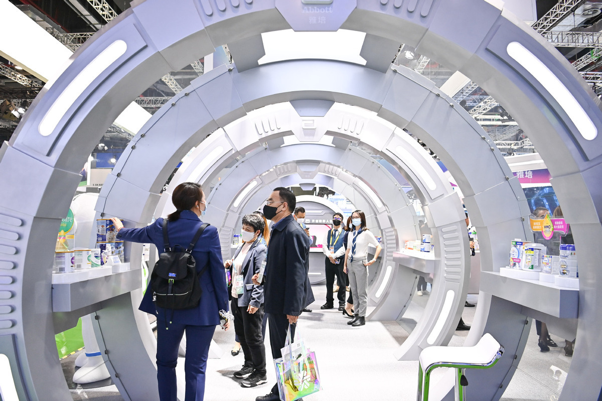 Visitors stop at a booth at the Medical Equipment and Healthcare Products Exhibition Area of the 4th China International Import Expo (CIIE) in Shanghai, Nov 6, 2021. [Photo/Xinhua]