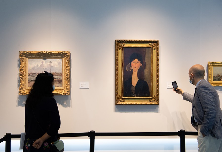 SHANGHAI, Nov. 7 (Xinhua) -- A newly-opened cultural relics and art section at the fourth China International Import Expo (CIIE) has provided Chinese collectors an opportunity to relish globally-renowned masterpieces, with works of legendary artists such as Claude Monet, Zhang Daqian and Yayoi Kusama exhibited there.