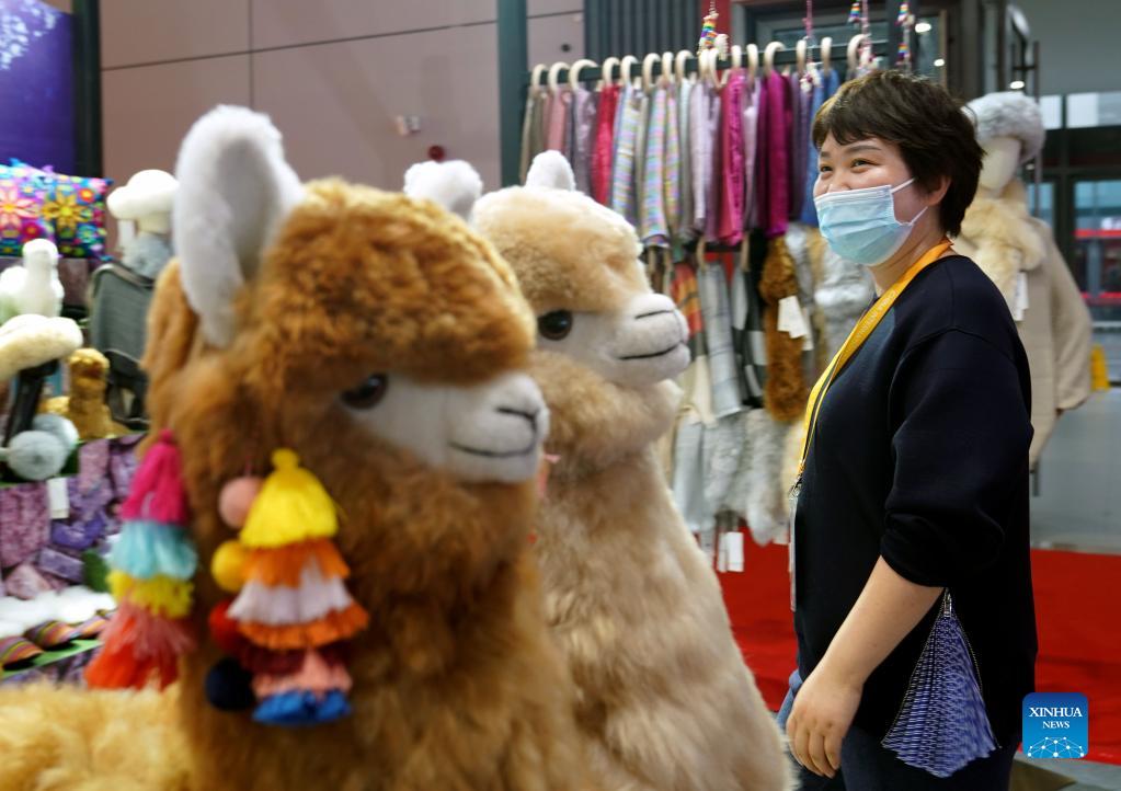 Ma Yuxia works at her booth during the 4th China International Import Expo (CIIE) in east China's Shanghai, Nov. 6, 2021. At the first CIIE, Ma Yuxia, who had worked in South America after graduating from university, introduced the plush alpaca-fur stuffed toys made by Peruvian craftsmen into the Chinese market. Ma and her Peruvian business partner rented a booth of merely nine square meters at the first CIIE to display and promote these toys. Their alpaca dolls were quickly sold out, encouraging Ma and her Peruvian business partner to set up their own brand "Warmpaca." Their brand has now entered shopping malls in many Chinese cities such as Beijing, Shanghai, Guangzhou and Chengdu, and has forged cooperation with three family workshops of about 60 artisans in Peru. At the 4th CIIE, Ma's booth expanded fourfold. Having participated in the CIIE for four consecutive years, Ma and her business partner gained access to the Chinese market with these cute little "alpacas" and other traditional hand-made fluffy dolls. (Xinhua/Liu Ying)