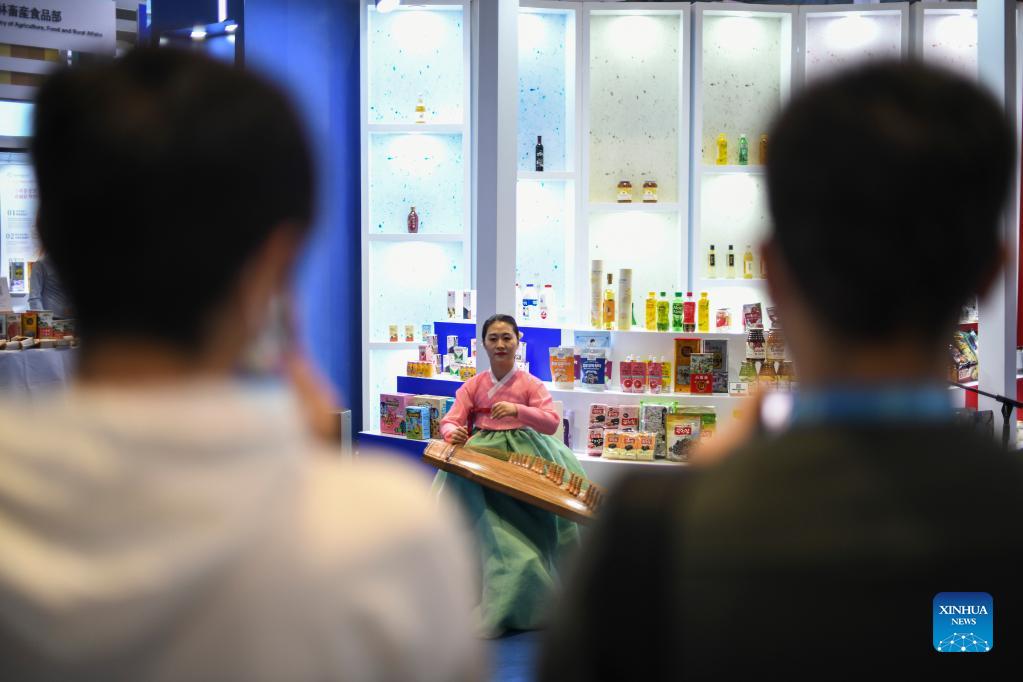 Visitors enjoy a musical instrument performance at the 4th China International Import Expo (CIIE) in east China's Shanghai, Nov. 6, 2021. (Xinhua/Zhang Haofu)