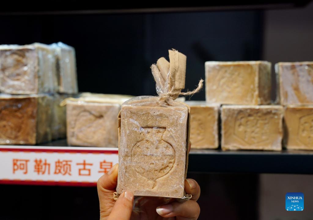 Photo taken on Nov. 8, 2021 shows soaps from Syria during the 4th China International Import Expo (CIIE) in east China's Shanghai. (Xinhua/Liu Ying)