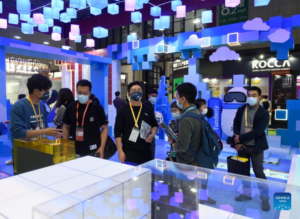 Visitors learn about 3D printing services at the Trade in Services Exhibition Area of the 4th China International Import Expo (CIIE) in east China's Shanghai, Nov. 7, 2021. The 4th China International Import Expo (CIIE) has drawn over 300 businesses from over 50 countries and regions at its Trade in Services Exhibition Area. (Xinhua/Xu Liang)
