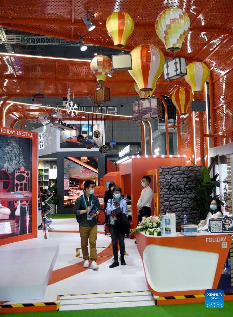Visitors tour the Trade in Services Exhibition Area of the 4th China International Import Expo (CIIE) in east China's Shanghai, Nov. 7, 2021. The 4th China International Import Expo (CIIE) has drawn over 300 businesses from over 50 countries and regions at its Trade in Services Exhibition Area. (Xinhua/Xu Liang)