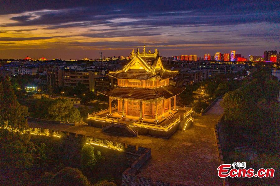 Photo shows the mysterious sunset scenery at the ancient city of Xiangyang, Hubei Province, Nov. 7, 2021. (Photo/Yang Dong)