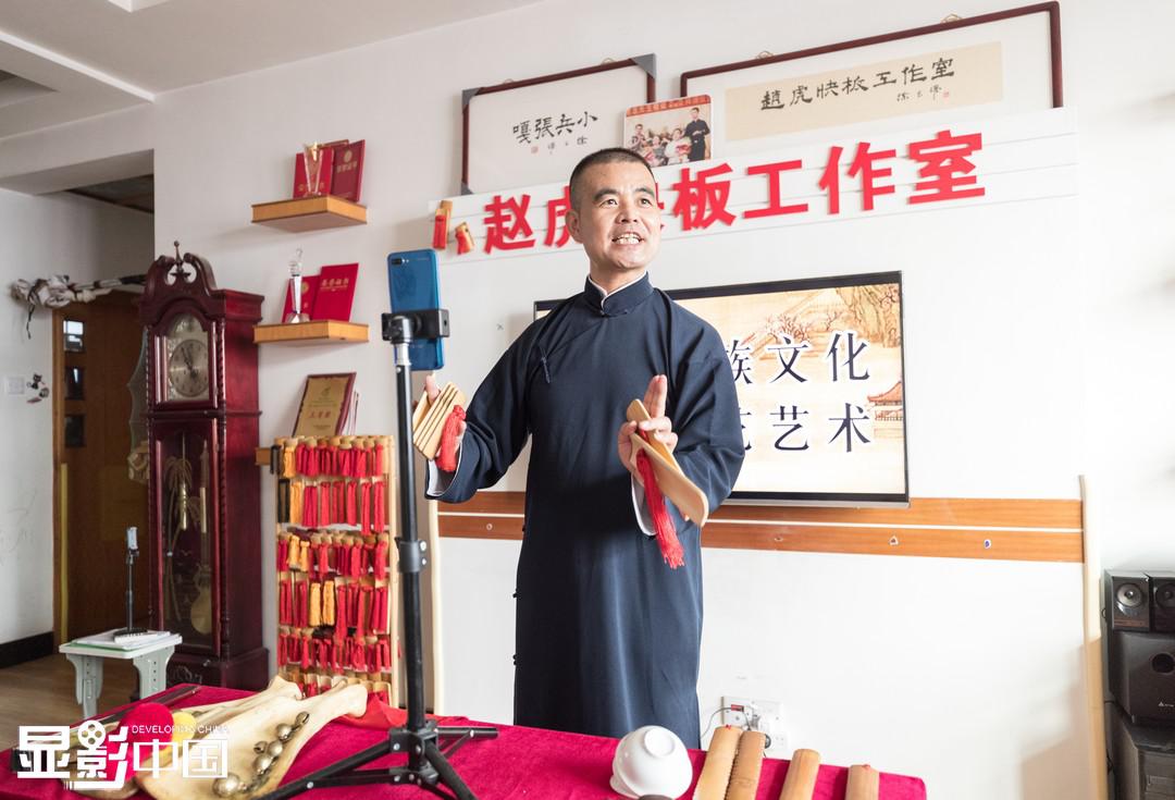 Zhao Hu, an inheritor of Chinese traditional art of Kuaiban, spreads Kuaiban culture to more and more people, trying to create new stories to share. Kuaiban is a form of oral storytelling performance that is popular in northern China. The storyteller rattles a set of bamboo boards to produce an accompany beat, similar to rapping.(xiongan.gov.cn/Li Xin)