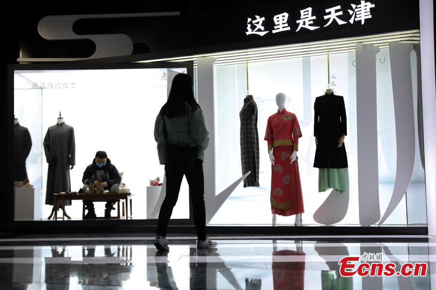 This photo shows Tianjin Pavilion of the 4th CIIE, National Exhibition and Convention Center (Shanghai), Nov. 8, 2021. (Photo: China News Service/Zhang Hengwei)