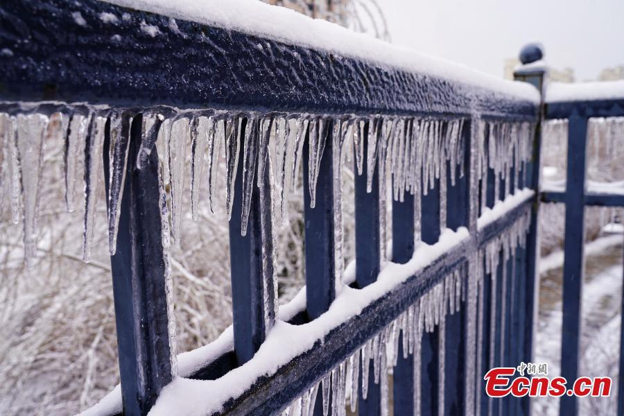 Icicles hang on the railings in Harbin, Heilongjiang Province, Nov. 9, 2021. (Photo/Sun Hanlun)