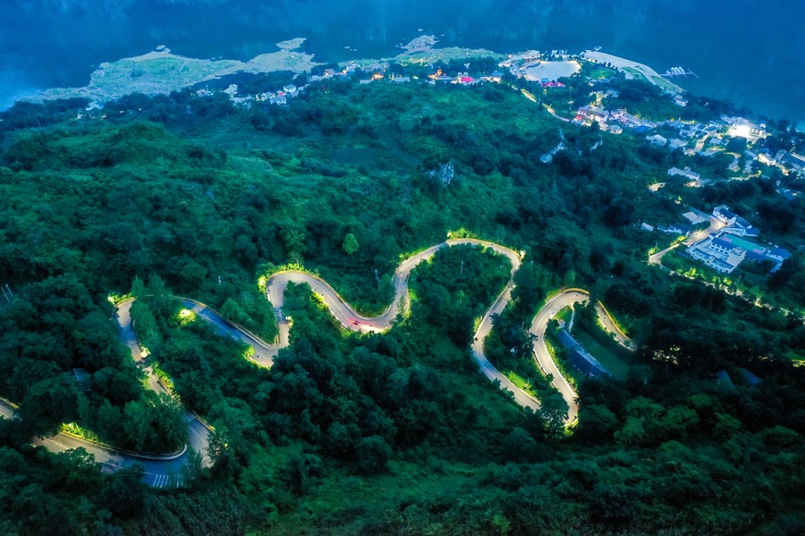 Aerial photo taken on July 23, 2021 shows a paved road in Huawu Village of Qianxi City, southwest China's Guizhou Province. (Xinhua/Yang Wenbin)