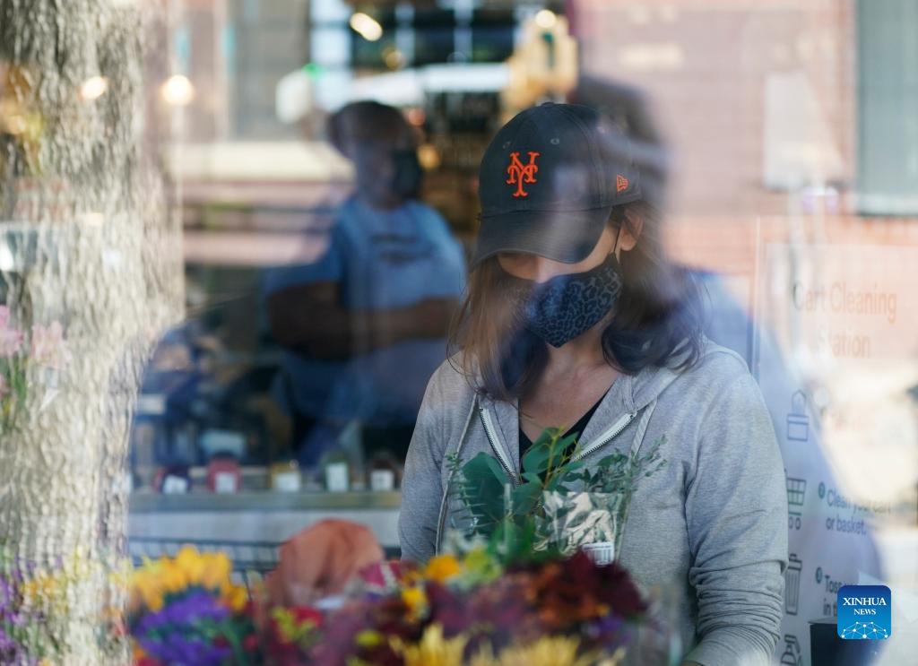 People shop in a grocery store in Washington, D.C., the United States, on Nov. 10, 2021. U.S. inflation remained elevated in October as supply chain disruptions have persisted for months, surging to the highest level in three decades, the Labor Department reported on Wednesday. The consumer price index (CPI) soared 0.9 percent in October after rising 0.4 percent in September, according to the latest report released by the department's Bureau of Labor Statistics. (Photo by Ting Shen/Xinhua)