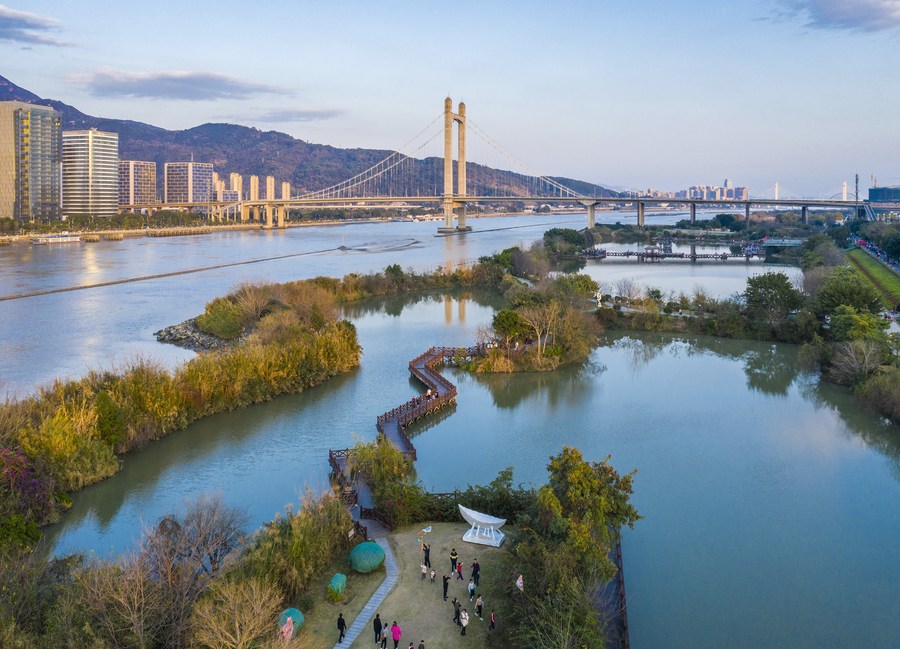 Aerial photo taken on Feb. 14, 2021 shows a view of Huahai Park in Fuzhou, southeast China's Fujian Province. (Xinhua/Jiang Kehong)