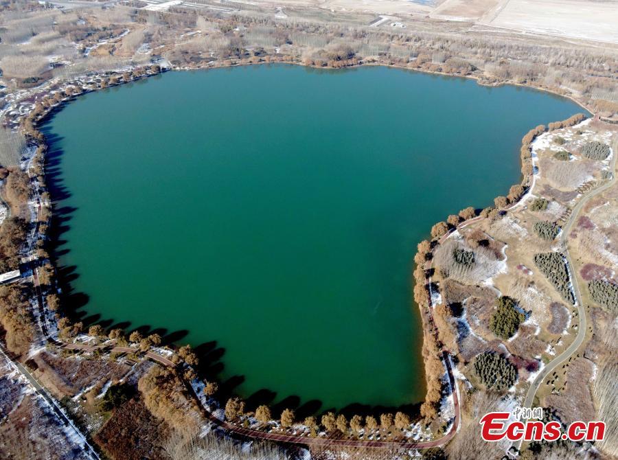 This aerial photo taken on Nov. 11, 2021 shows the picturesque early winter scenery at Lushuiwan scenic area in Zhangye City, northwest China's Gansu Province. (Photo/Cheng Li)