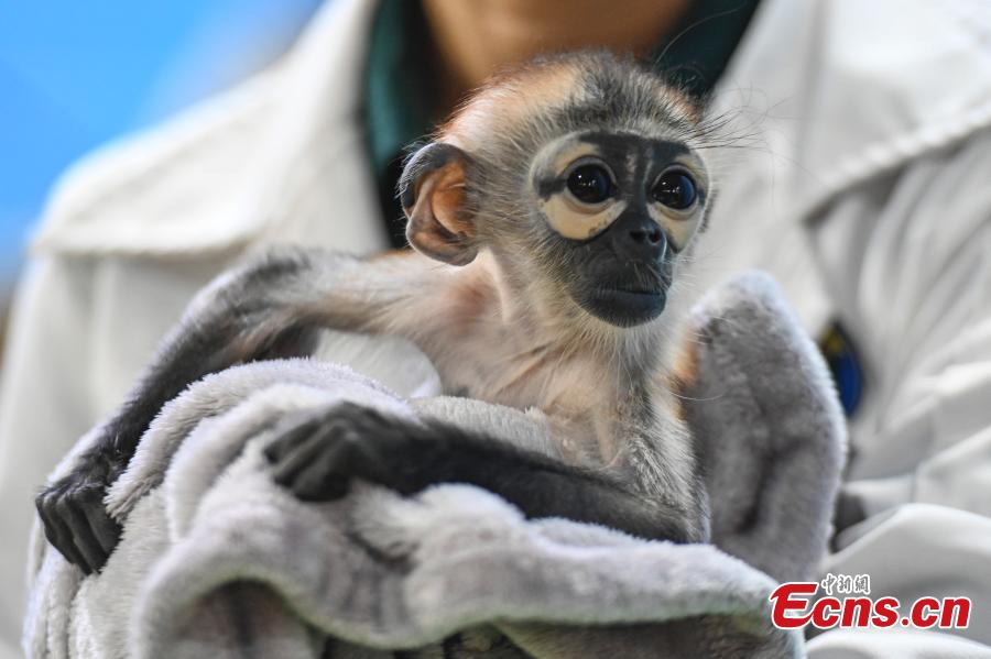 China's first artificially bred black-shanked douc debuts in Guangzhou