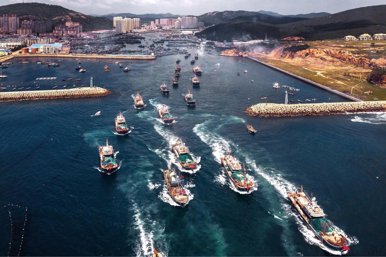 Photo taken on Sept. 1, 2021 shows fishing boats sailing from the Longwangtang Fishing Port in Dalian, northeast China’s Liaoning province, to fisheries in the Bohai Sea and the Yellow Sea. (People’s Daily Online/Chen Fengxiao)