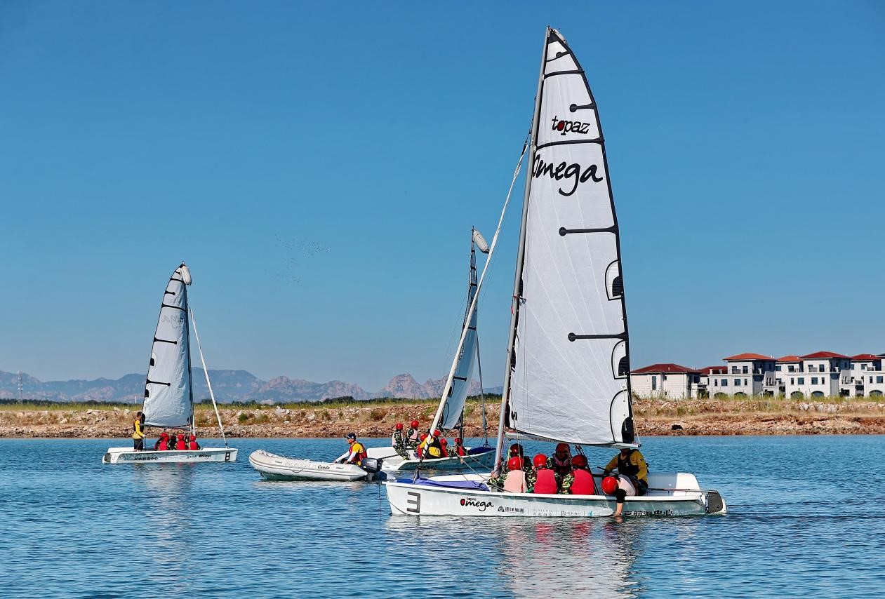 Primary school students from Qinhuangdao, north China’s Hebei province, try driving sailboats on the Bohai Sea, Sept. 22, 2021. (People’s Daily Online/Cao Jianxiong)