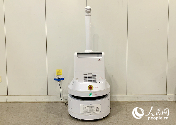 A robot seen inside the Wukesong Ice Sports Center is used to disinfect the arena. (People’s Daily Online/Hu Xuerong)