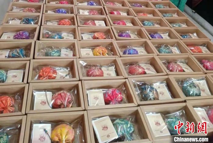 Photo shows fragrant sachets produced by inheritors of intangible cultural heritage for frontline health workers. (Photo courtesy of the Gansu Intangible Cultural Heritage Protection Center)