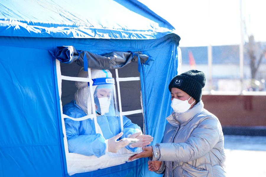 A medical worker prepares to conduct nucleic acid testing in Heihe, northeast China's Heilongjiang Province, Nov. 7, 2021. (Xinhua/Wang Song)