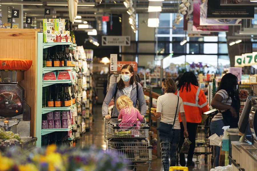 People shop in a grocery store in Washington, D.C., the United States, on Nov. 10, 2021. (Photo by Ting Shen/Xinhua)