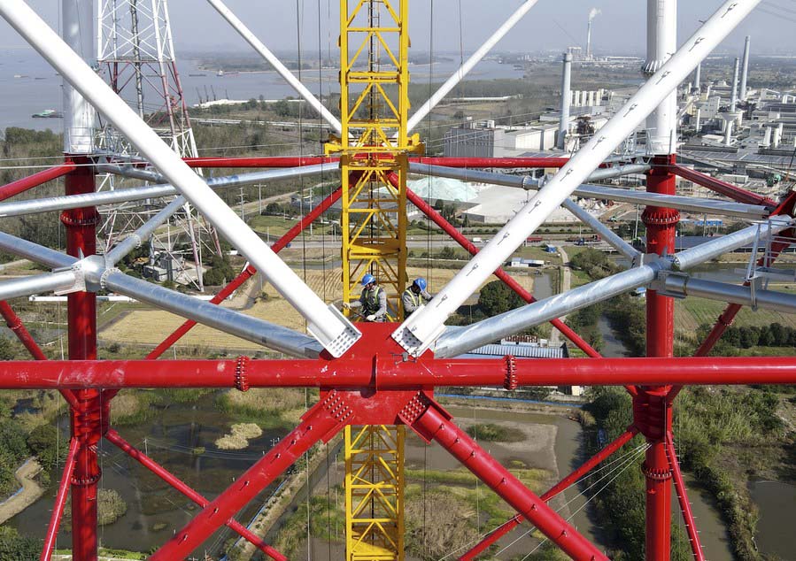 ANHUI, Nov. 13 (Xinhua) --Climbing and walking over 100 meters high, the power transmission construction workers are known as "spider man". They are working around the clock to ensure that a critical project connecting west and east China gets completed on time.