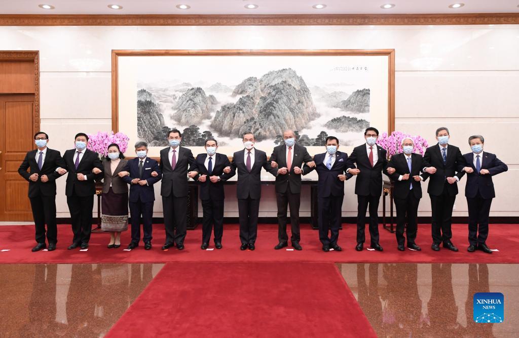 Chinese State Councilor and Foreign Minister Wang Yi meets with diplomatic envoys of the Association of Southeast Asian Nations (ASEAN) countries in Beijing, capital of China, Nov. 14, 2021. (Xinhua/Shen Hong)