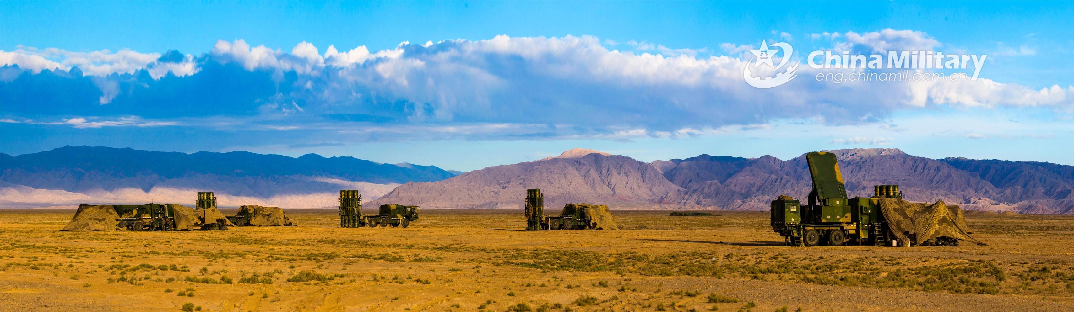 Air-defense missile systems attached to a brigade of the 82nd Group Army under the PLA Central Theater Command are erected at a military shooting range during a 72-hour field training exercise. (eng.chinamil.com.cn/Photo by Zhao Xing,Xu Li and Li Xiangdong)