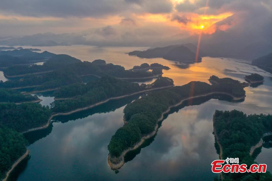 Photo taken on Nov. 14, 2021 shows the early winter scenery of Qiandao Lake, or Thousand-Island Lake, in Chun'an County in Hangzhou, east China's Zhejiang Province. The lake covers 573 square kilometers, and is home to 114 known fish species. (Photo: China News Service/Yu Jianfeng)