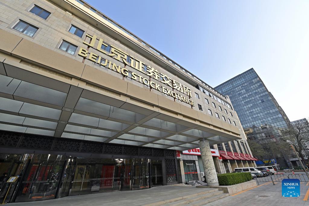 Photo taken on Nov. 14, 2021 shows an exterior view of the office building of the Beijing Stock Exchange, in Beijing, capital of China. The newly-established Beijing Stock Exchange started trading on Monday morning, with the first batch of 81 companies debuting on the bourse. (Xinhua/Li Xin)