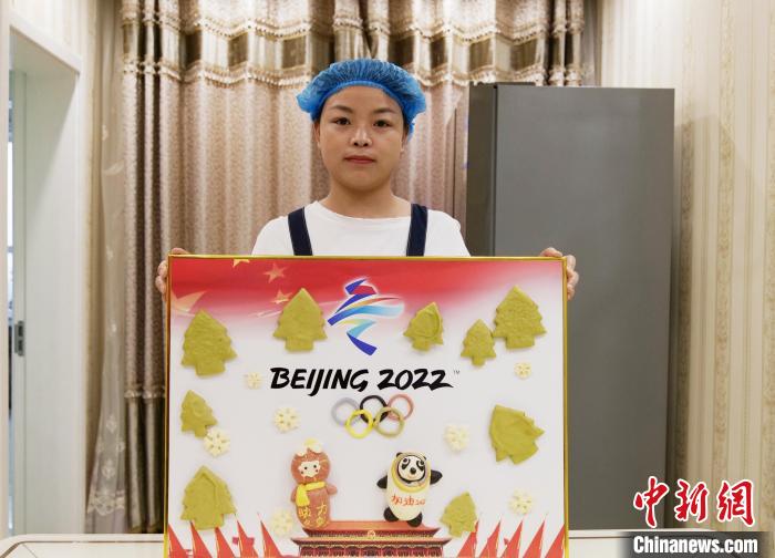 Liu Danmei shows her steamed buns designed on the theme of the Beijing 2022 Olympic Winter Games. (Photo/Wang Lei)