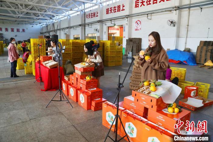 Local villagers promote sales of ripened oranges via online platforms. (Photo/chinanews.com)