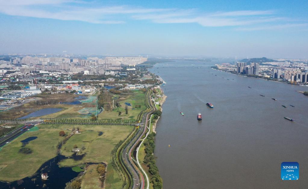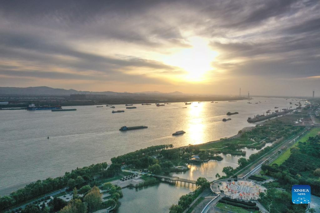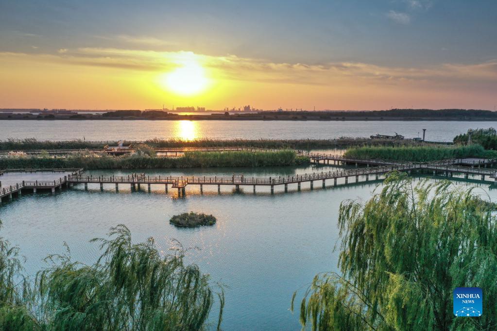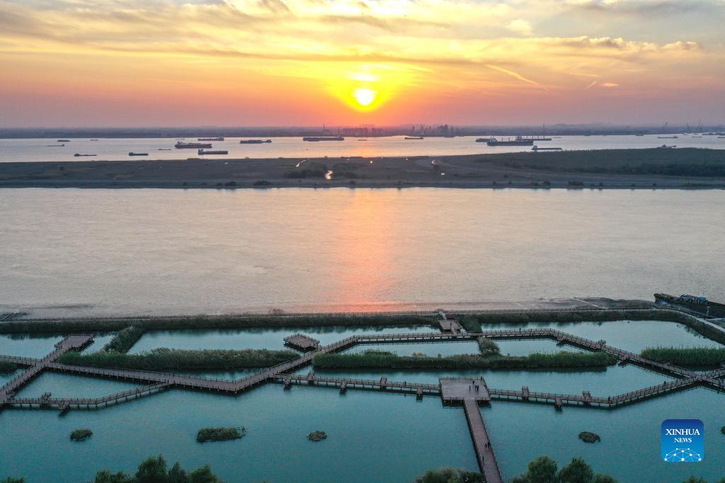 In recent years, Jiangsu Province in east China has promoted the restoration of the Yangtze River ecological environment with green development. Local authorities have dismantled illegal docks, shut down polluting enterprises and facilitated ecological wetlands on both sides of the river. Many years of tree planting and wetland protection along the river in Jiangsu have paid off. Now the Yangtze River in Jiangsu presents a new look featured by beautiful river beach wetlands and scenery. (Photo by YangLei/Xinhua)