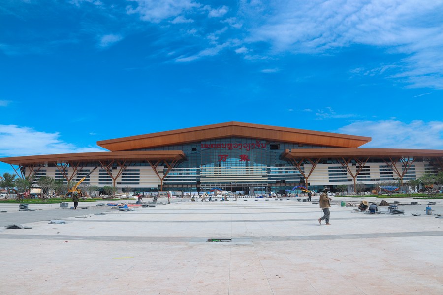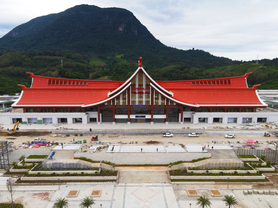 Photo taken on Nov. 10, 2021 shows an exterior view of the terminal building of the Luang Prabang station along the China-Laos railway in Luang Prabang, Laos. (CRCG/Handout via Xinhua)
