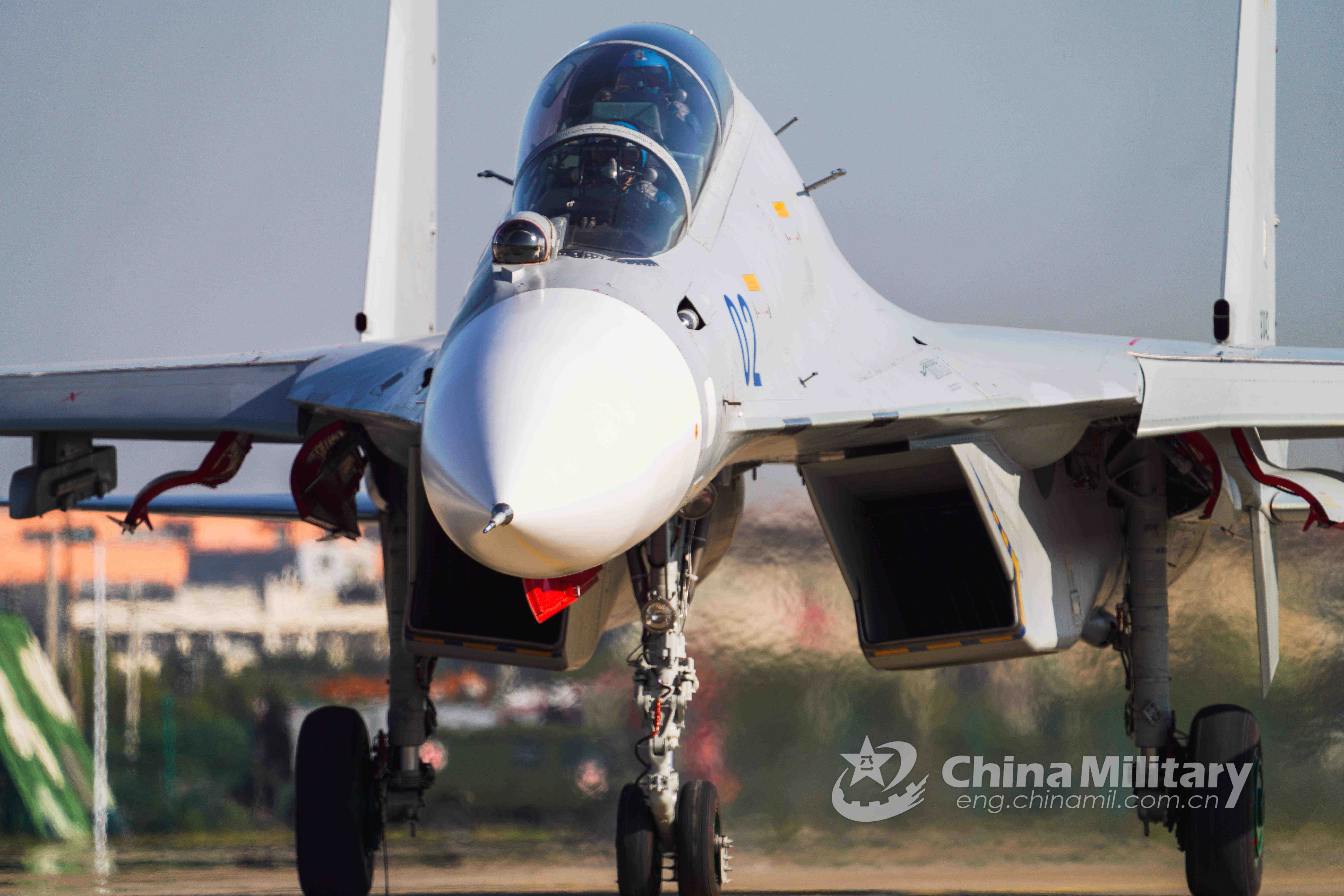 A Su-30 fighter jet attached to a naval aviation brigade under the PLA Eastern Theater Command taxies to the takeoff point during a recent round-the-clock flight training exercise. (eng.chinamil.com.cn/Photo by Zhao Ningning and Shentu Linhui)