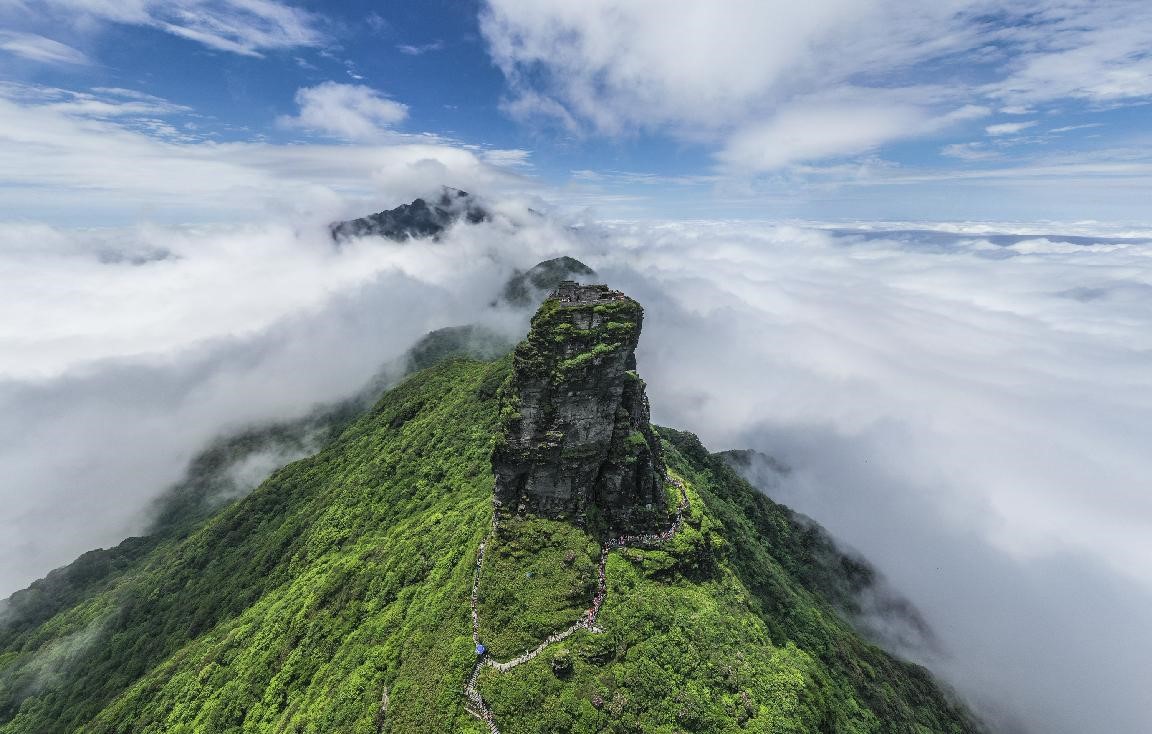 Mount Fanjing, situated in Tongren city of Guizhou, has preserved a mid-subtropical island mountain ecosystem and is rich in biodiversity.