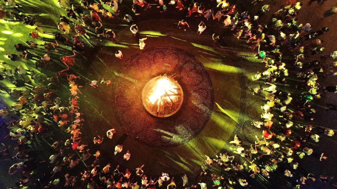 Tourists enjoy a bonfire party in Zhaishadong village at the foot of Mount Fanjing in southwest China’s Guizhou province, July 10, 2021. (People’s Daily Online/Li He)