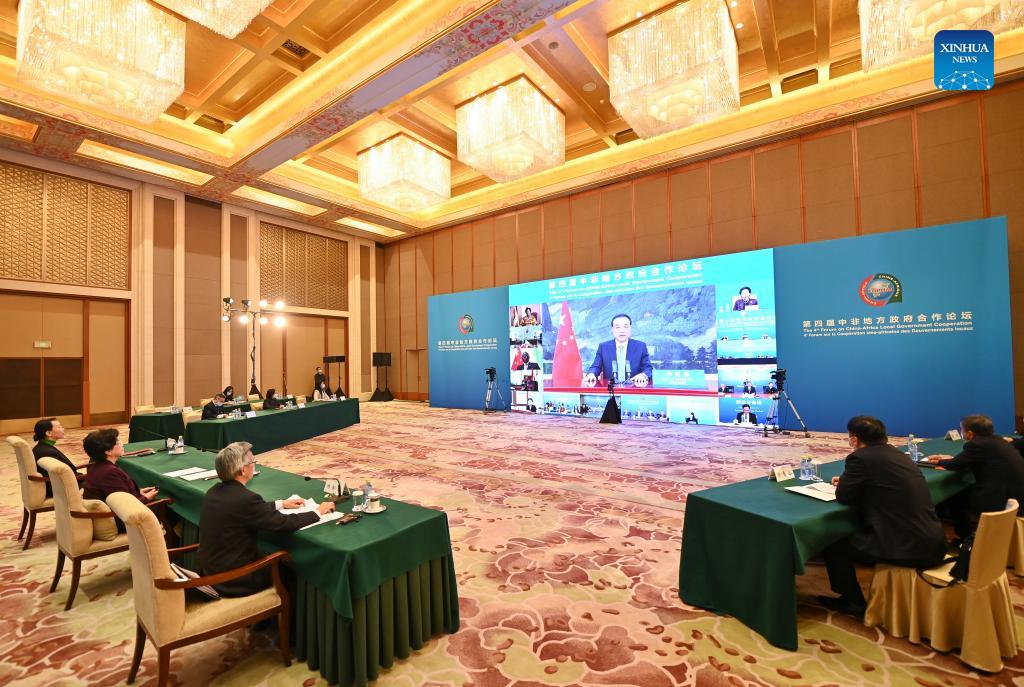 Chinese Premier Li Keqiang addresses the 4th Forum on China-Africa Local Government Cooperation via video link, in Beijing, capital of China, Nov. 16, 2021. (Xinhua/Li Xiang)