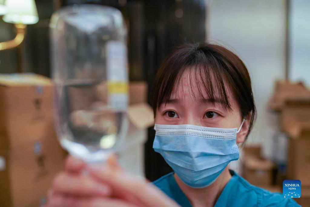 Liu Bing prepares medical supplies near a nucleic acid test laboratory named Huoyan, or Fire Eye, in Heihe City, northeast China's Heilongjiang Province, Nov. 14, 2021. Liu Bing, a 24-year-old medical worker, acts as a real "virus detective" in the fight against the latest COVID-19 resurgence in Heihe City. The city reported new locally transmitted COVID-19 cases on Oct. 27. Since then, Liu joined other 32 medical workers for nucleic acid testing tasks. Dressed head to toe in protective clothing, Liu has been working around the clock for COVID-19 testing, such as extracting nucleic acid from swab samples. Her body was often drenched in sweat by wearing thick protective suits. "I need to be responsible for each sample, which is to be responsible for people in the city. I must be extremely cautious," Liu, a Heihe local said. (Xinhua/Wang Song)