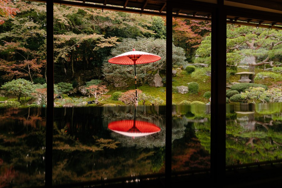Photo shows autumn scenery at the Former Chikurin-in Temple in Kyoto, Japan, Nov. 16, 2021. (Xinhua/Zhang Xiaoyu)