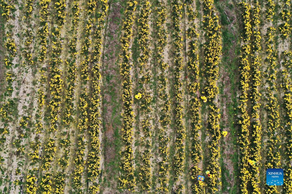Farmers busy with harvesting chrysanthemums in Nanchang, Jiangxi