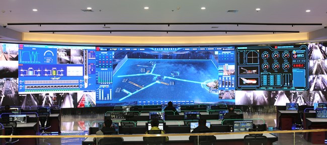 All the work is completed remotely by operators on computers in a ground control center, where a big screen is showing real-time videos of each underground channel and checkpoint, as well as all relevant indicators.