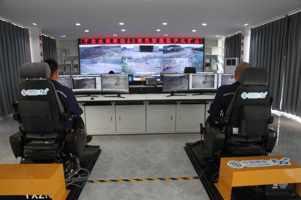 Two employees are controlling excavators at a 5G information center of a cement company in central China's Henan province. (Photo from dahe.cn)