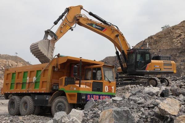 An unmanned excavator works at a mining site of a cement factory in central China's Henan province. (Photo from dahe.cn)