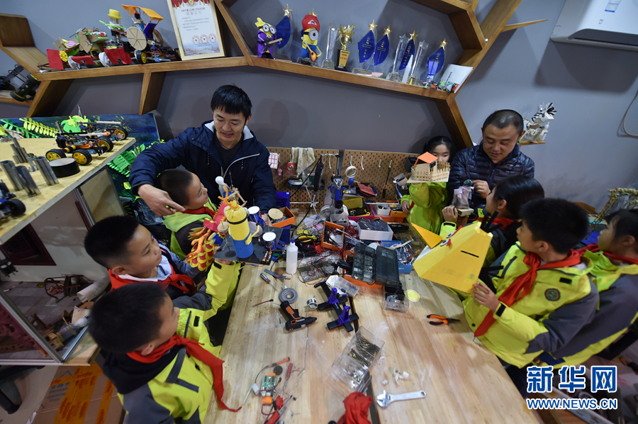 A primary school in Hefei City, east China's Anhui Province, has set up an "innovation studio" in a bid to broaden students' horizen by enriching their knowledge of science and arts. At the studio, students are encouraged to make the paintings from their textbooks "come alive" with the help of sound, light, and even programming. Such activities are in line with the "double reduction" policy, namely reducing students' excessive homework and off-campus tutoring during their nine-year compulsory education. (Xinhuanet/Yang Xiaoyuan)